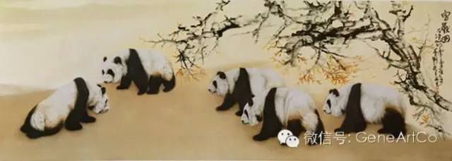 Conversely, the surrounding scenes of this panda painting are truly unique. The artist portrays the vividly charming artistic essence of dual styles and three-dimensional space. The pandas are more beautiful than real ones and even better-looking and more lifelike than photographs of pandas. They exemplify utter beauty, elegance, purity and cleanliness, as if they had just bathed in pristine water.