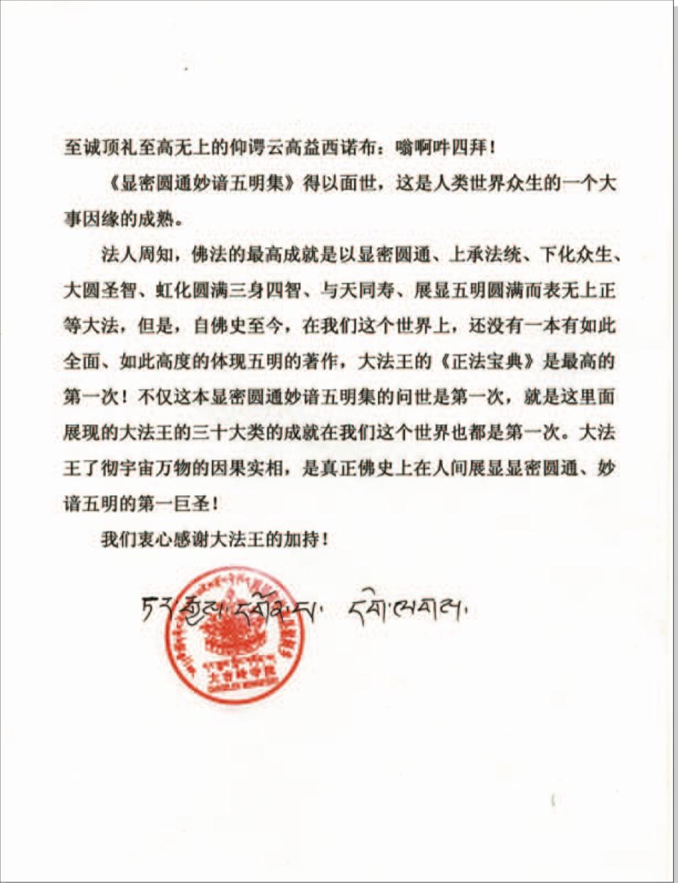首先,合十讚頌至尊怙主多杰羌佛第三世雲高益西諾布的《正法寶典》的出版,怙主加持給我們的福慧!這本寶書是世界上第一次出現的大圓滿寶鏡,至尊怙主把西藏四大教派及顯教佛法完滿無缺地帶到我們這個世界上來,眾生是多麼幸福啊!怙主其實是不用祝賀的,因此我們祝賀眾生得聞正法而解脫!